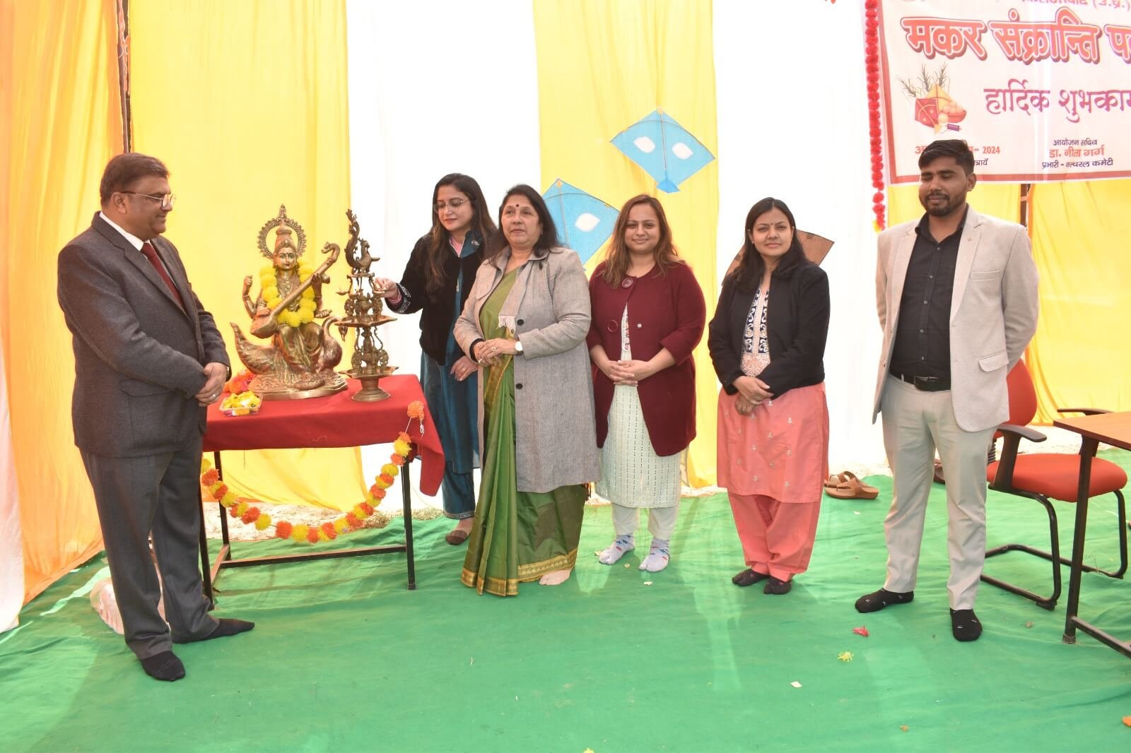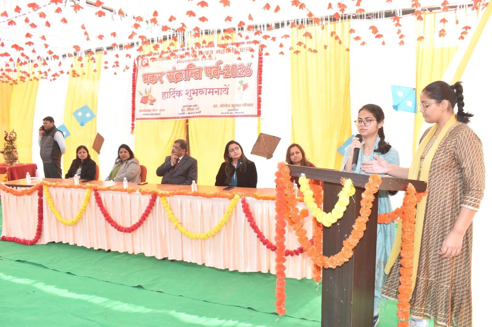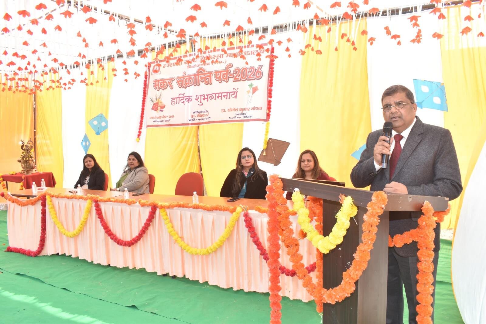 दिनांक- 14.01.2026 को मकर संक्रान्ति पर्व के उपलक्ष्य में प्राधानाचार्य डॉ. (प्रो0) योगेश कुमार गोयल के मार्गदर्शन में स्वशासी राज्य चिकित्सा महाविद्यालय, फिरोजाबाद के महाविद्यालय परिसर में कल्चरल कमेटी द्वारा कार्यक्रम का आयोजन किया गया। इस कार्यक्रम का संचालन डॉ नीता गर्ग, विभागध्यक्ष बायोकेमेस्ट्री विभाग, नोडल कल्चरल कमेटी द्वारा किया गया। उक्त कार्यक्रम का शुभारम्भ सरस्वती पूजा से किया गया।प्रधानाचार्य द्वारा संकाय सदस्यों एवं एम0बी0बी0एस0 छात्र-छात्राओं कोसम्बोधन में मकर संक्रान्ति पर्व के महत्व के बारे में बताया गया एवं छात्र-छात्राओं द्वारा नृत्य, कविता एवं मकर संक्रान्ति पर्व से सम्बन्धित विचार साझा किये गये। कार्यक्रम के समापन के उपरान्त मिष्ठान (गजक,रेबड़ी एवं तिल के लड्डू) खचड़ी का वितरण किया गया और संकाय सदस्य, छात्र-छात्राओं एवं कर्मचारीगण द्वारापतंगवाजी की गयी। कार्यक्रम में सभी द्वारा बड़ चढ़कर हिस्सा लिया गया।