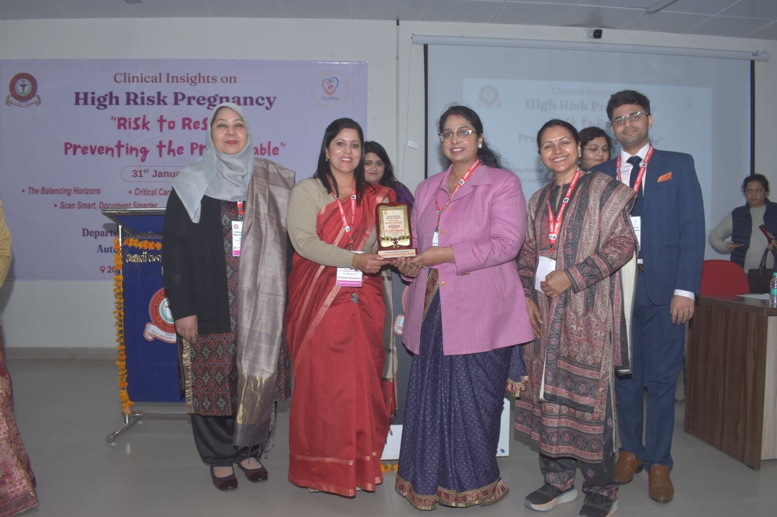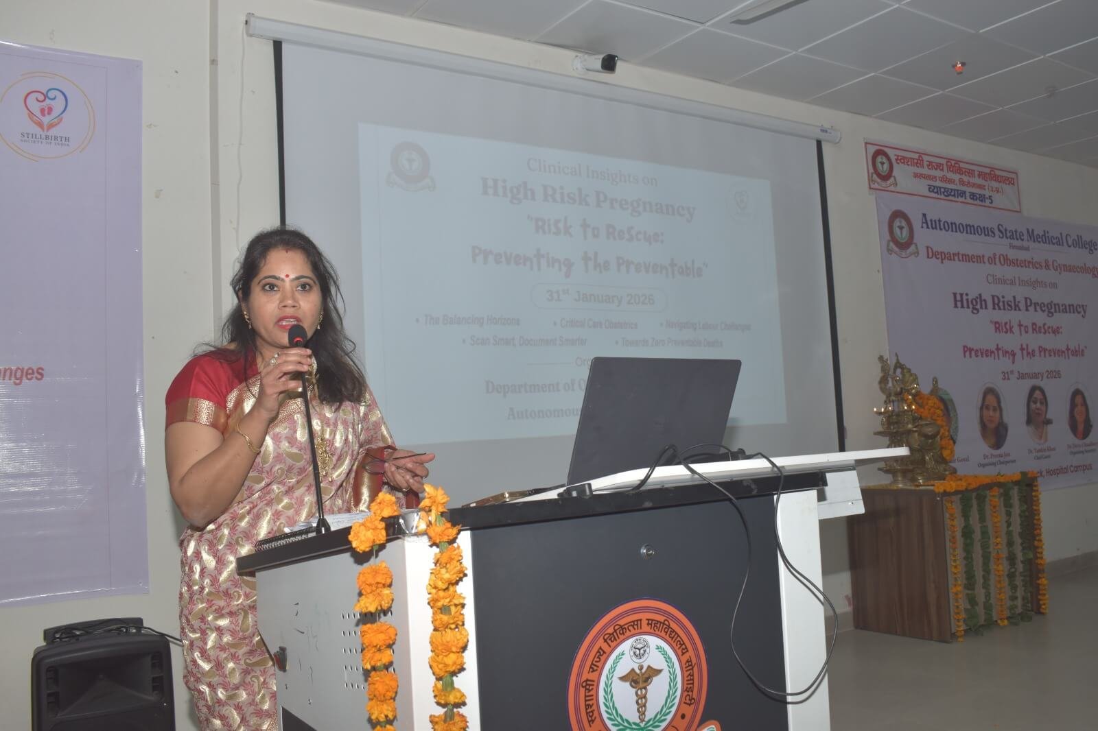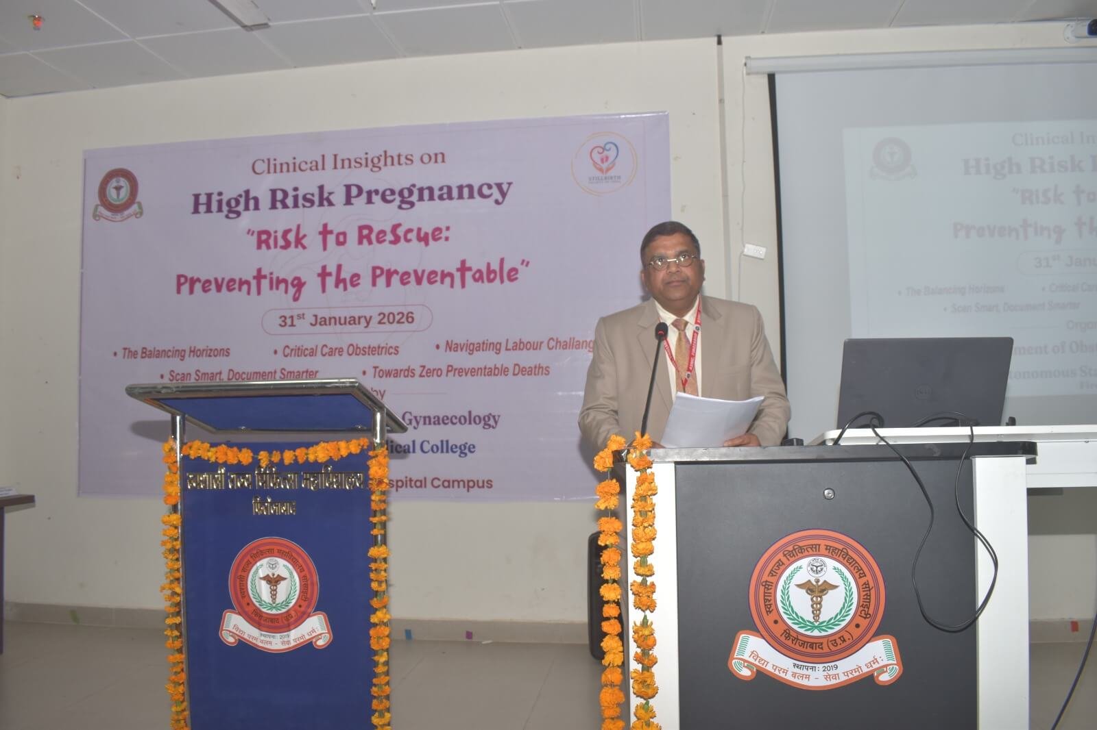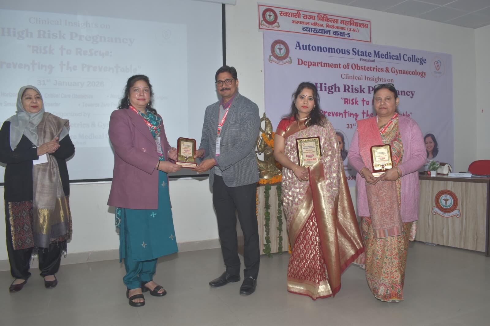 On 31st January, 2026, under the guidance of Principal Dr. Yogesh Kumar Goyal, the Obstetrics & Gynaecology Department of Autonomous State Medical College (ASMC), Firozabad has organized a one day conference on Clinical Insights on High Risk Pregnancy ” Risk to Rescue: Preventing the Preventable”. The Chief Guest for the Program was Dr Tamkhin Khan, Professor, Department of Obstetrics and Gynaecology, Aligarh Muslim University & founder of still birth Society of India. The Organising Chairperson of the program was Dr. Prerna Jain, Professor & Head, Obs & Gynae and Dr Divya Chaudhary, Associate Professor and Dr Shipra Gupta, Assistant Professor, Obs & Gynae was organizing secretary of the program. Dr Saroj Singh, ex-principal, SN medical college Agra, Dr Shikha Singh, HOD Obstetrics and Gynaecology, Dr Kalpana, HOD Obstetrics and Gynaecology & other esteemed guests gave their talk with the aim to reduce maternal & perinatal mortality and morbidity. 03 UPMC credit hours were awarded by UP medical council. A poster competition was also organized for PG students of different medical college’s, in which Dr Flora Tyagi, PG resident of OBGY department of ASMC Firozabad stood first. Around 150 gynecologist from different part of states attended & benefitted from this academic extravaganza. HODs, Faculty members, resident doctors and interns, MBBS Students attended the event.